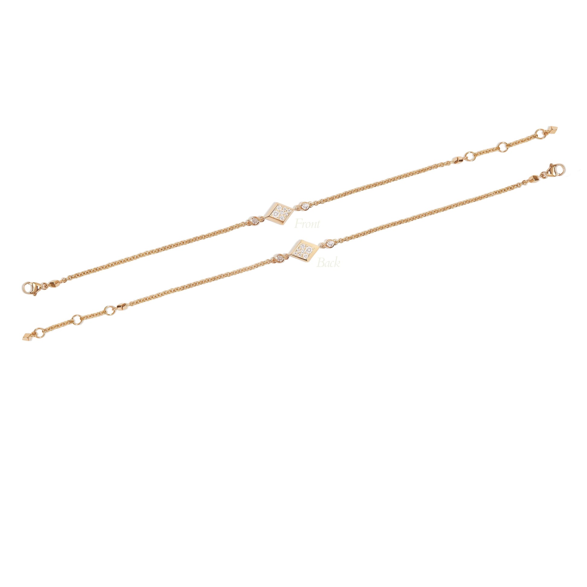 The bracelet motif and round diamond elements are all double-sided. The bracelet contains 0.24 total carats, and all diamonds are responsibly sourced and are D-E in color and VS2 or higher in clarity.