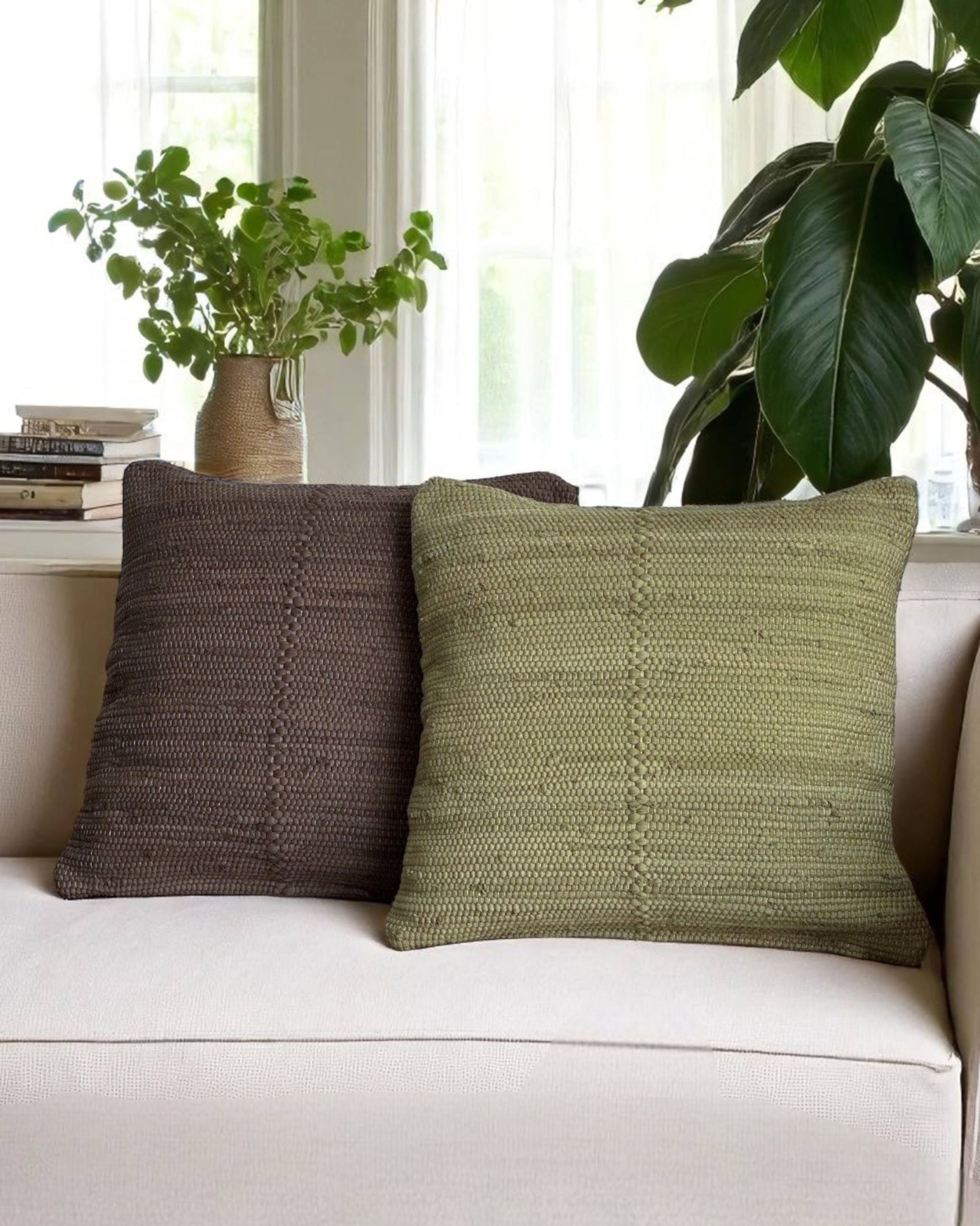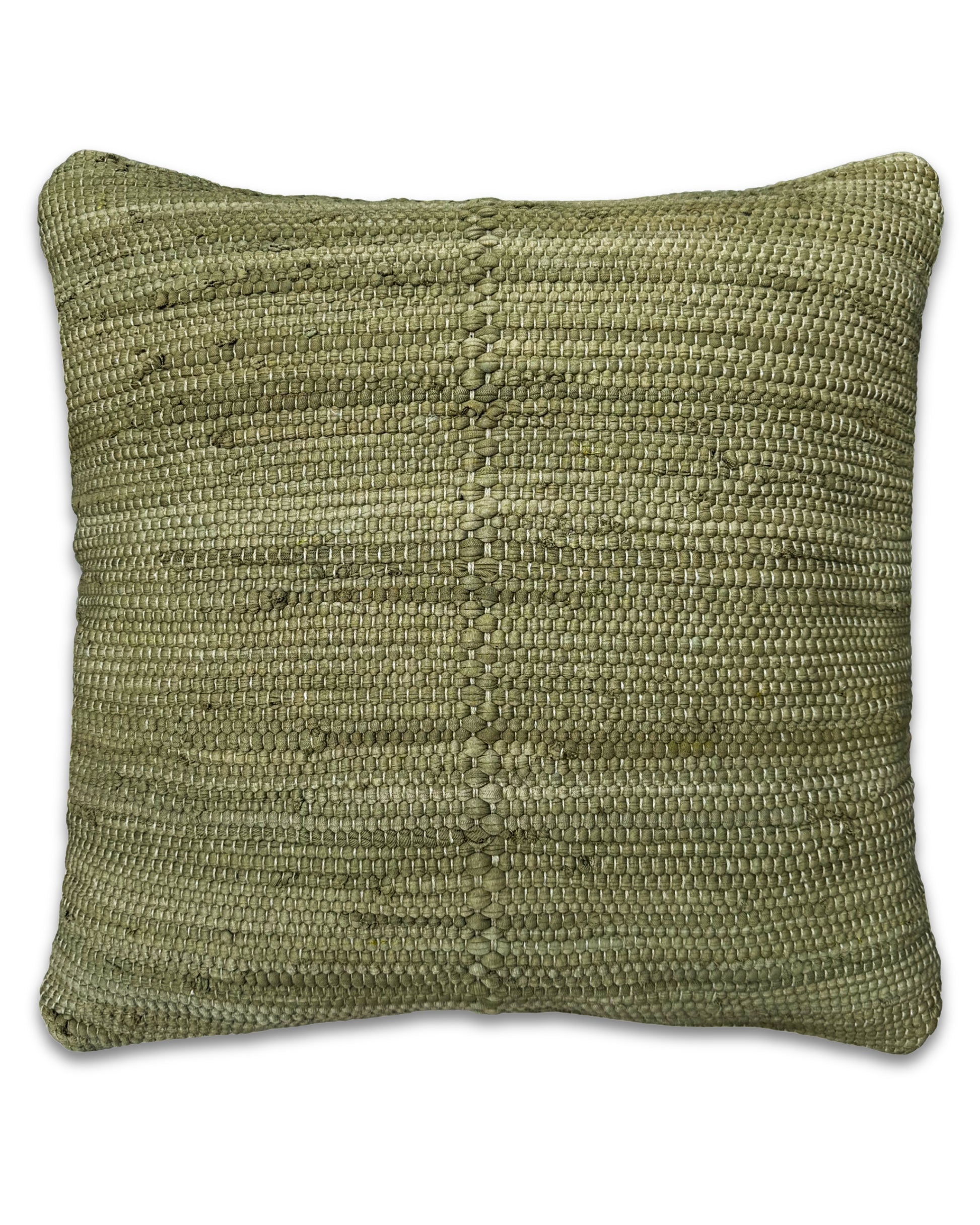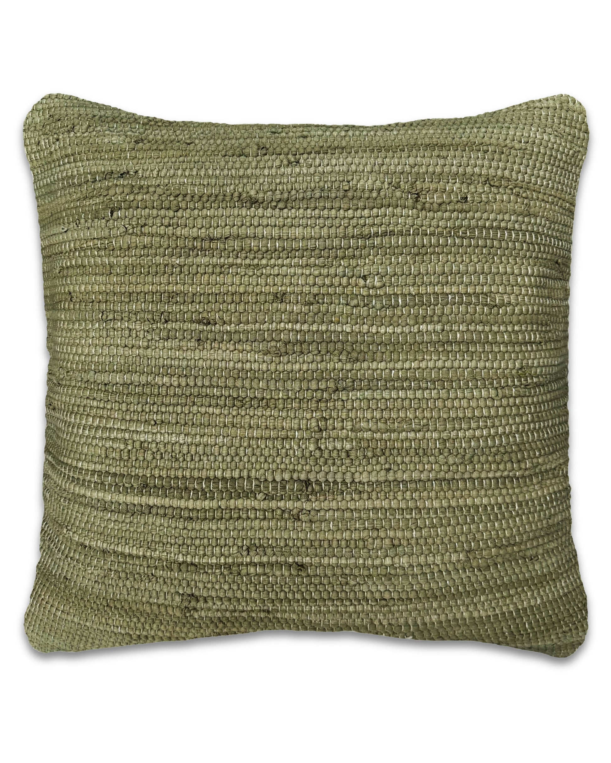 Handcrafted chindi rag rug pillow. Rag rug making is an age-old tradition, breathing new life into leftover fabric scraps. From waste to wonderful, we've chosen to display the braided edge front and center. We love the texture and handmade quality of these pillows in rich tones.
