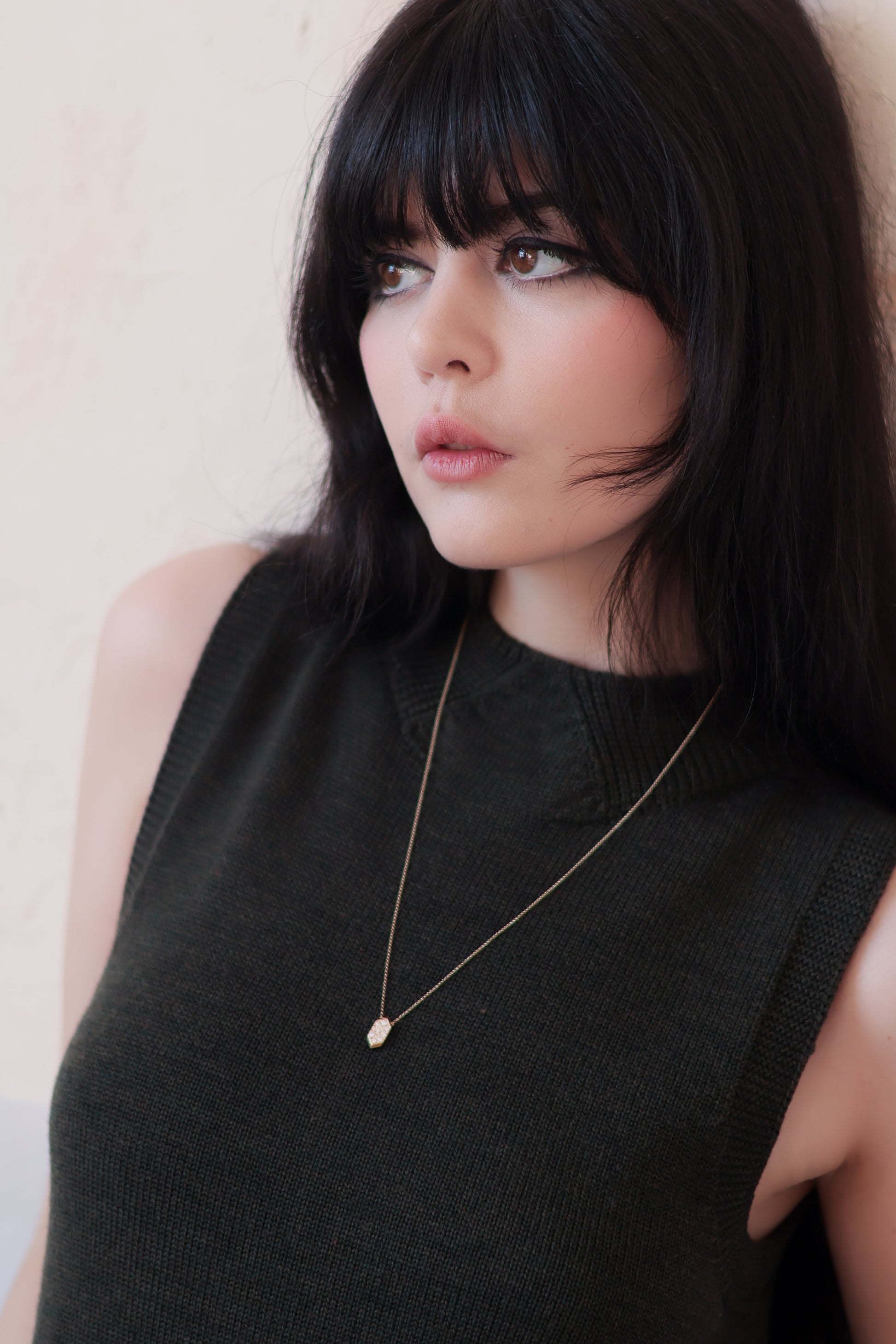 With a softly flared silhouette, it drapes easily over shirting or bare skin, balancing structure with softness. A clean neckline and relaxed fit keep the look refined, while the subtle swing adds depth and quiet drama.