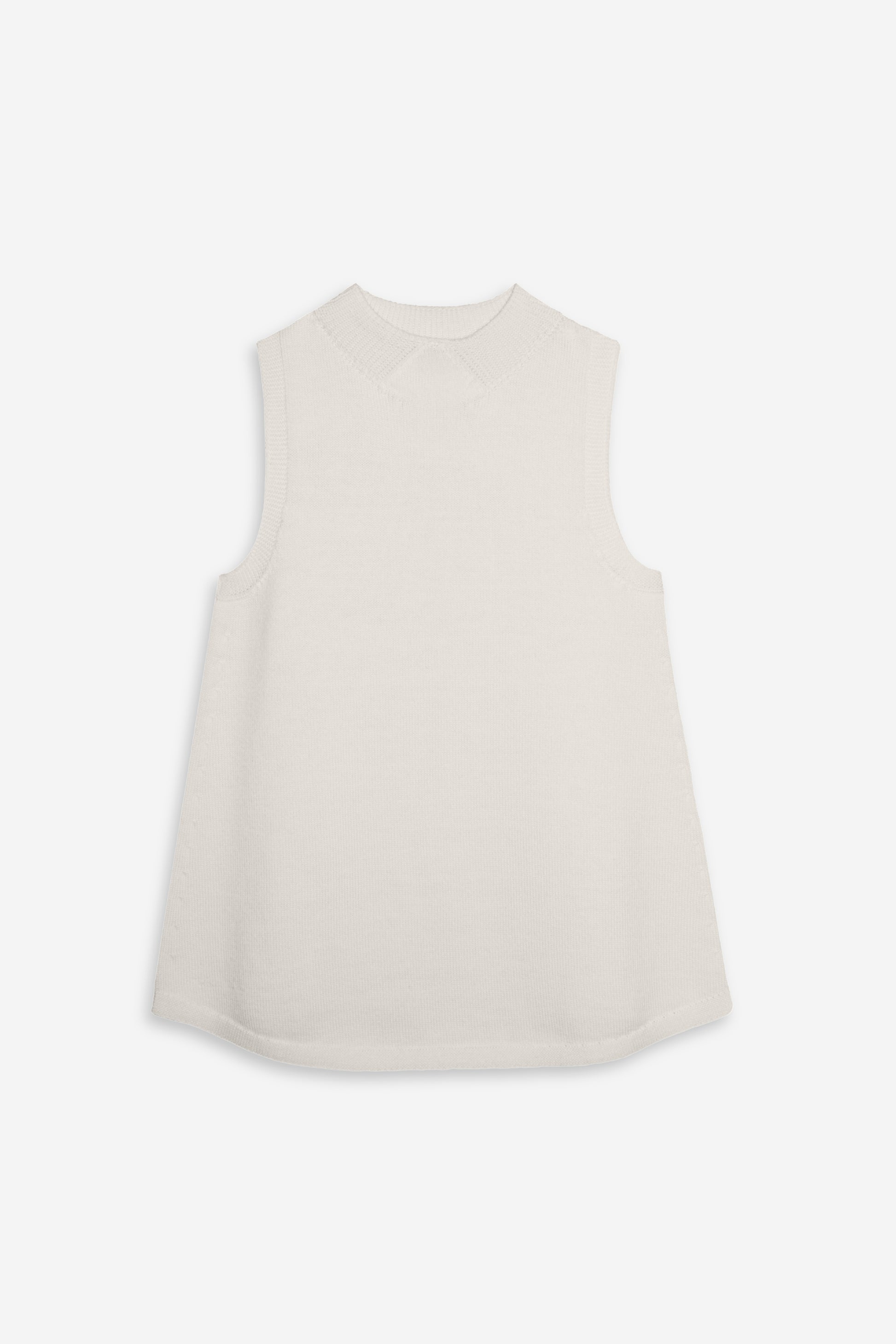 With a softly flared silhouette, it drapes easily over shirting or bare skin, balancing structure with softness. A clean neckline and relaxed fit keep the look refined, while the subtle swing adds depth and quiet drama.