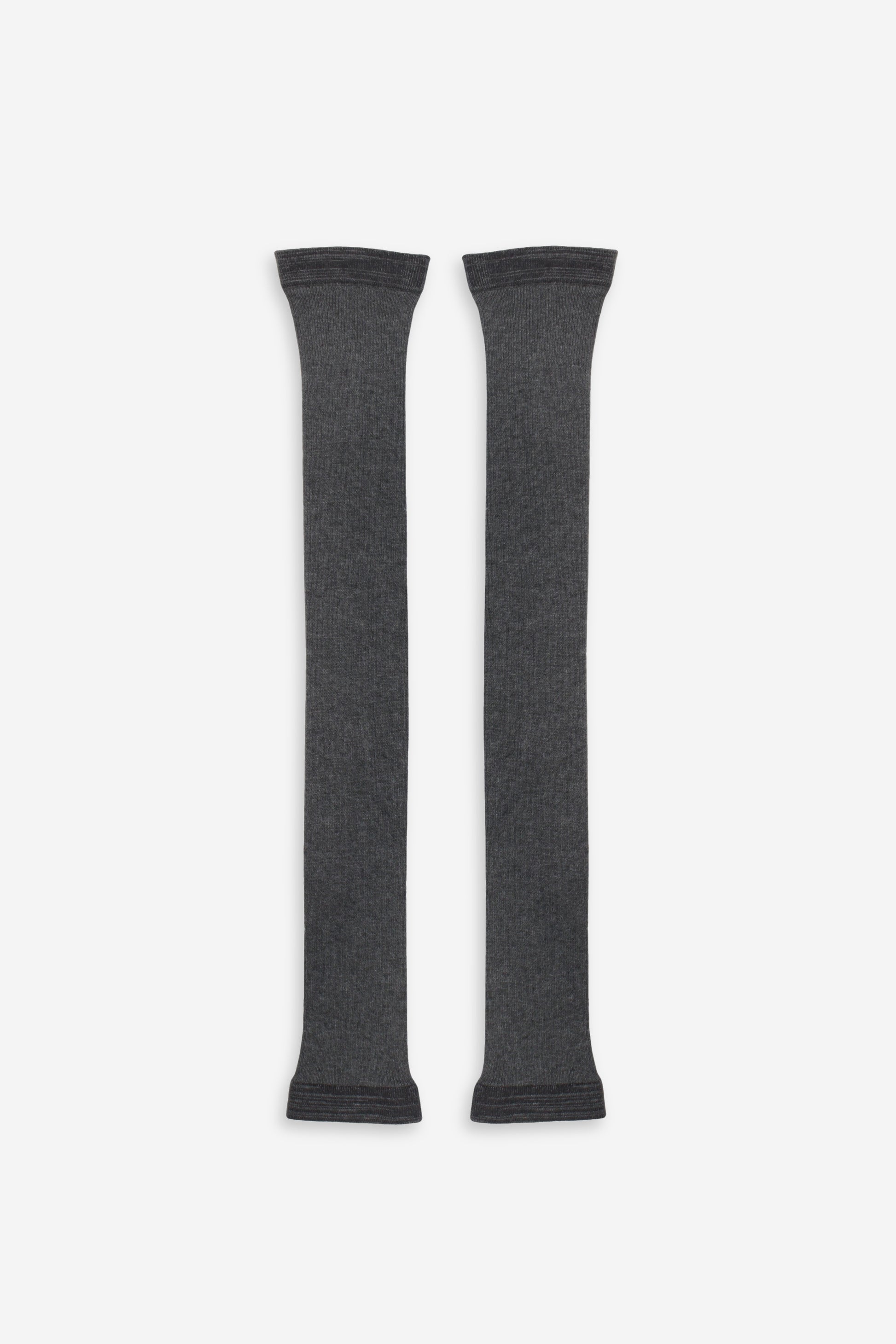 A lightweight pair of leg warmers knit in eco-friendly viscose. Can be worn extended or gently slouched for versatile styling. Soft and breathable, they feature subtle texture and a streamlined, elongated 23-inch length—offering a considered layering accessory for versatile, refined wear.