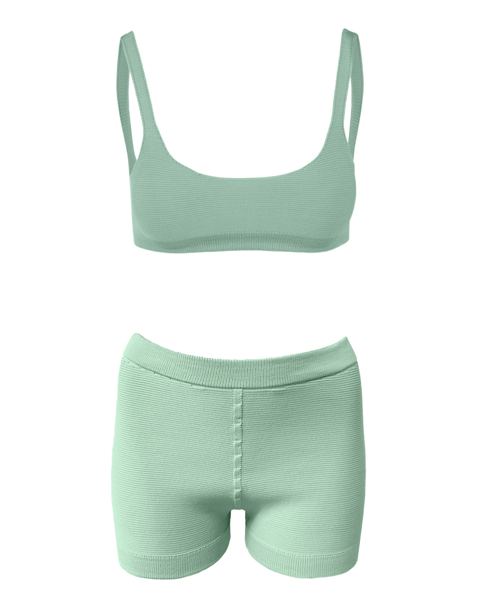 Colette is a bandeau-inspired swim top with fixed straps. Chloe is a boy short style swim bottom. Knit with Sorona, a naturally-derived alternative nylon that's fast-drying and has plenty of stretch, yet holds it shape when wet. This innovative material keeps our planet cool while you are basking in the sun. Knit in one continuous piece in a wasteless process, this swimsuit is completely seamless for added comfort and strength.